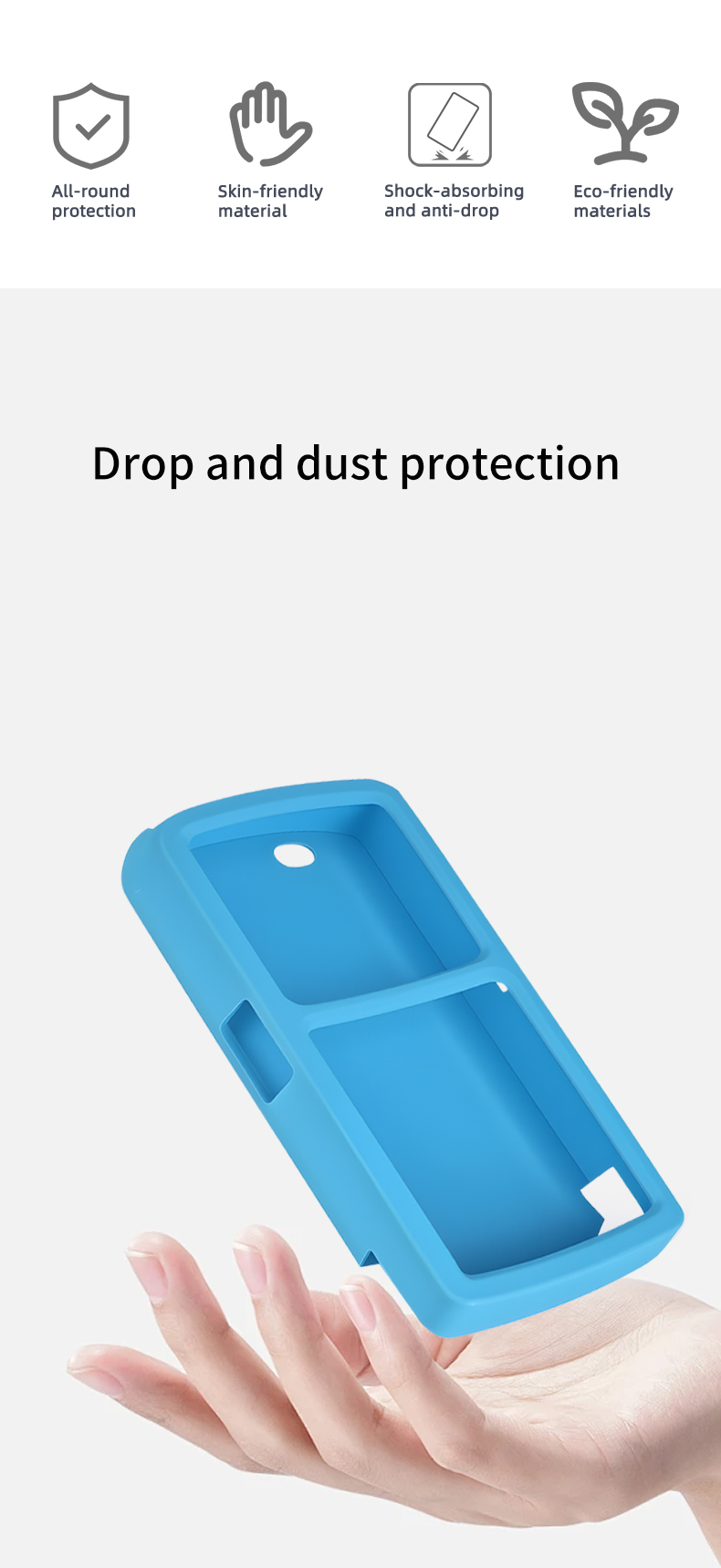 Усебаковая абарона: сіліконавы чахол забяспечвае ўсебаковую абарону POS-тэрміналаў, каб ваша тэрмінальнае абсталяванне не было пашкоджана ў выпадку выпадковага ўдару, падзення або іншых выпадковых абставінаў. Выкарыстоўваючы наш ахоўны чахол, вы можаце спакойна карыстацца сваім POS-тэрміналам. Незалежна ад таго, дзе размешчаны ваш POS-тэрмінал, чахол можа забяспечыць яго самую надзейную абарону, так што вы можаце весці бізнес без клопатаў.